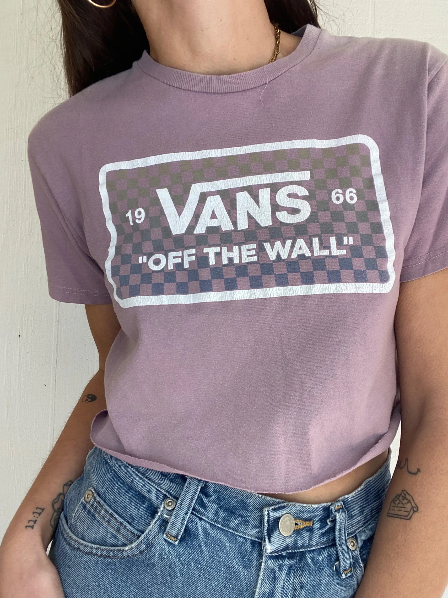 shop all › vans "off the wall" crop vans "off the wall" crop $24.00 size: smallthis item is part of our collection of reworked clothing found during our bus adventures around Texas! size: smallthis item is part of our collection of reworked clothing found during our bus adventures around Texas! Purchase Added!
